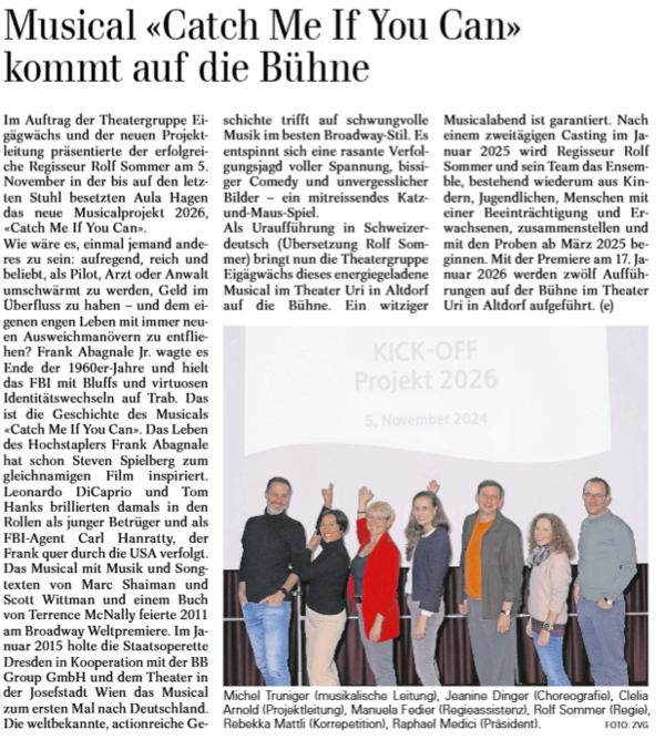 Am 5. November 2024 fand die Kick-Off für das neue Projekt 2026 statt. Rund 80 Interessierte wohnten dem Event bei und erfuhren den Namen des nächsten Projekts: Catch me if you can